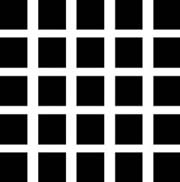 ![]() | 上で計算したものとオリジナルの画像を加算してやる。これが、人間が感じる画像をシミュレートしたものである。 白い格子の交差点部が黒く見えているのがわかると思う。といっても、もともとその部分は黒く見えていたとは思うが。 下に、シミュレート画像とオリジナル画像を並べてみる。 |