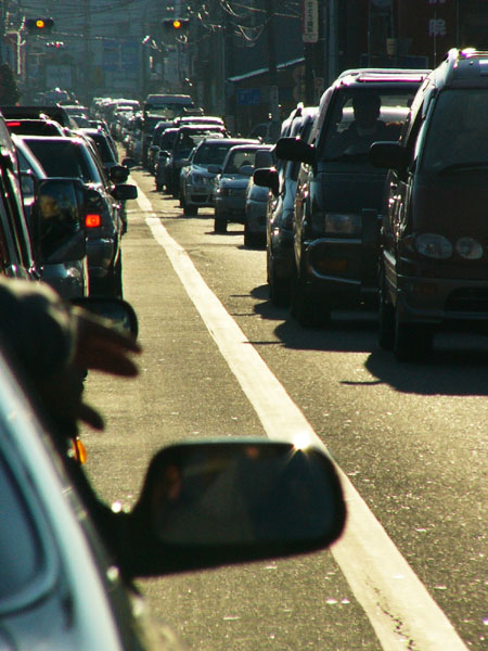 「ストリート発」という言葉をラジオで聞いた。「ストリート」という言葉を訳すとしたら、やはり「道の上」なのかなぁとラジオを聞きながら思ったのである。「ストリート発」はやはり「前略、道の上から」になるだろうし。なんて考えていたら、家の近くで少しだけ渋滞にはまる。というわけで撮った写真は「前略、道の上から」