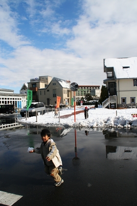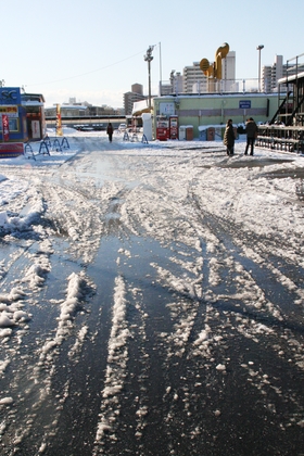 雪と氷の北千住アメージングスクエア。最後の写真はチームメイトに撮影されたもの。