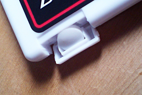 このミンティアのケースには、実は、結構面白い秘密が隠されている。タブレットを出す部分・蓋内部の経常を眺めてみれば、少し不思議な形状であることに気づくはずだ。特に説明文などがケースに書かれているわけではないけれど、この蓋形状は、タブレットを「一回に一粒だけ取り出す」ためのものである。タブレット菓子をケースから出そうとすると、一度に何粒も出てしまい困ることがある。しかし、ミンティアの場合、そういったことは起きない。