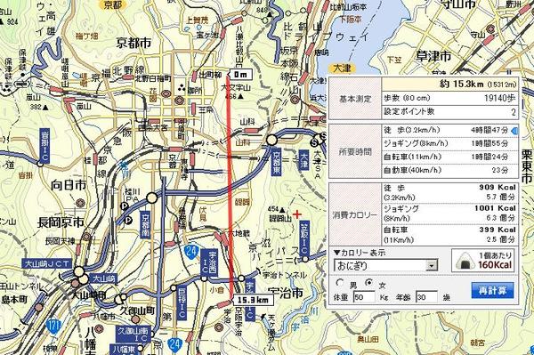 なるほど、そう言われてみると、20kmという距離が確かに「遠い」と実感させられる。毎日、宇治と銀閣寺の間を自転車で往復することはなかなかできそうにない。