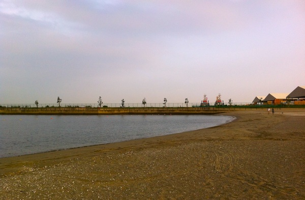 東京湾には、自然の島も浮かんでいれば、驚くほど広い面積の人工島がたくさん浮かんでいます。人工島、たとえば、東扇島には波が砂浜を撫で続ける浜辺もあったりします。