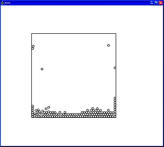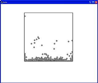 CGプログラムやゲーム・プログラム、あるいは、シミュレーション・プログラムに興味がある人、特にそんなプログラムを自作してみたい、と一度でも考えたことがある人であれば、第10回学生CGコンテストのインタラクティブ部門の佳作受賞作品「タマ転がし」(本文章の横に貼り付けた画像のうち、左の画像)を見れば、それが金子勇さんの「水粒子サンプル・プログラム」の動作画面(本文章の横に貼り付けた画像のうち、右の画像)だと一瞬でわかることだろう。もちろん、この両方を初めて見る人であっても、受賞作品の動画と金子さんの水粒子サンプル・プログラム(定数をいくつか変えた上で、コンパイルしたもの)の動作画面 (Balls.mov 5.6MB)を眺めてみれば、一目瞭然同じものであることがわかるはずだ。金子さんの水粒子サンプル・プログラムの定数を変えたものの動作画面を撮影したものが、インタラクティブ部門の佳作受賞作品「タマ転がし」である(もちろん、応募学生は金子氏ではない)。