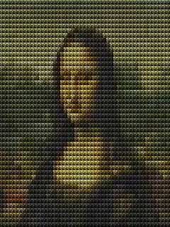 そういうわけで、小さな「モナリザ」が集まって一つの「モナリザ」となるような画像を作成してみることにした。逆に言えば- 「モナリザ」を見つめていくと、その先にさらに小さな「モナリザ」が見えてくる- という画像である。
