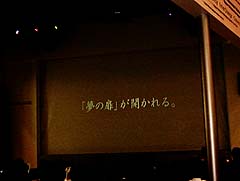 この緞帳が揚がる瞬間というのは実に気持ちがいい。コンサートでも舞台でも緞帳というのは現実の世界と架空の世界の間の「扉」である。それを開けるということは、すなわち、架空(今回は夢か)の世界へ入っていくことに他ならない。
