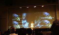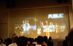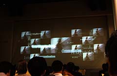 ![]() プレゼンが終わり、スクリーンが下る。そして、キーワードが前後に映し出される。 |