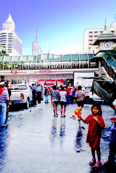ハイダイナミックレンジ合成写真(HDR写真)は、とても不自然に見えます。そして、それと同時に、HDR写真からは一種独特の空気感を感じます。右の写真は、一年近く前に撮影したHDR写真です。水鉄砲を手にするこどもが遊ぶ横を、本物の銃弾を撃つことができる銃を持つ人たちが歩いていたりします。日が真上から差すこの時間には、大人は日陰で休んでいるので、通りの中心はまるでこどもたちが支配している世界であるかのようにも見えたりもします。戒厳令が出ている街とは思えない景色です。