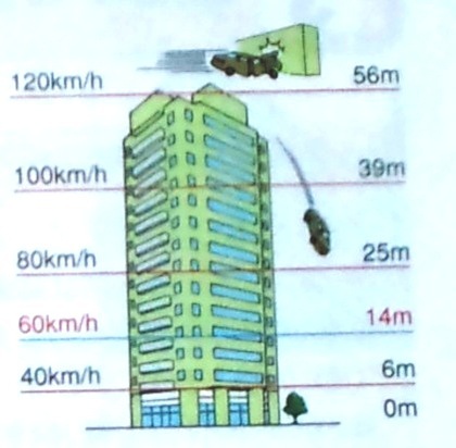「衝突時の時速」を「ビルから落ちた時の高さ」に対応させて、衝突の衝撃を想像させるイラストなどもあって、で「交通安全の(ための)物理」を実感させられます。