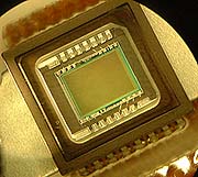 と同じく実体顕微鏡の接眼部からデジカメで撮影を行っているからである。デジカメはこういう時に何より重宝する。さて、デジカメと言えば、こちらも同じくCCDを用いているわけである。さて、8.の拡大画像を見ると、このカメラのCCDのカラーフィルターは補色方式(CMYG=シアン、イエロー、マゼンダ、グリーン)であることがわかる。原色タイプでないところを見ると、どうやら感度重視の製品であるようだ。また、この拡大画像などを眺めると、