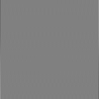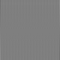 で調べた液晶のフィルターと同じような構造であることがわかる。よくストライプ模様の服を着ている人をCCDビデオカメラで撮影すると、モアレが発生することがあるが、それはこういったフィルターの色の並びに起因しているわけである。フィルターの周期とストライプの模様が干渉してモアレが生じてしまうのである。 最近のものではソフト的にかなりの処理をしてモアレが出にくいようにしているし、CCDも高解像度化が進んでいるので、なおさら出にくい。私が使用している富士写真フィルムのFinePix700でそのようなモアレを出そうと思ってみたが、なかなか出なかった。むしろ、ピントを正確に合わせることができなかった。それでも、何とか白黒の縦線模様を撮影して、モアレを出してみたのが下の写真である。左がオリジナルで、右がそれに強調処理をかけたものである。