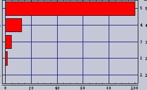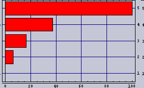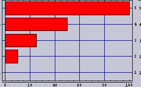![]() | 100m内にカップルが5組として方程式を解くとこうなる。棒グラフの先端の位置がカップルの座っている位置を示している。1組目は0m地点、5組目は100m地点、すなわち、街灯の直下である。 明るい所ではカップルの間隔が離れているのが判ると思う。 カップルの居心地(隣のカップルの存在感=隣のカップルの明るさ/距離)はいずれも、8という値である。カップルの居心地指数は少ないほど快適であることを示す。 |
