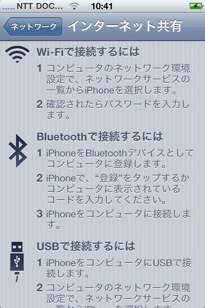 これまでの「テザリング」機能の場合、iPhoneのネットワーク機能はBluetoothもしくはUSB接続でしか使うことができませんでした。しかし、今度の「インターネット共有」機能では、最大5台までの外部機器がWifiを通じて接続できるパーソナル・ホットスポット機能も搭載されているので、結構面白そうです。